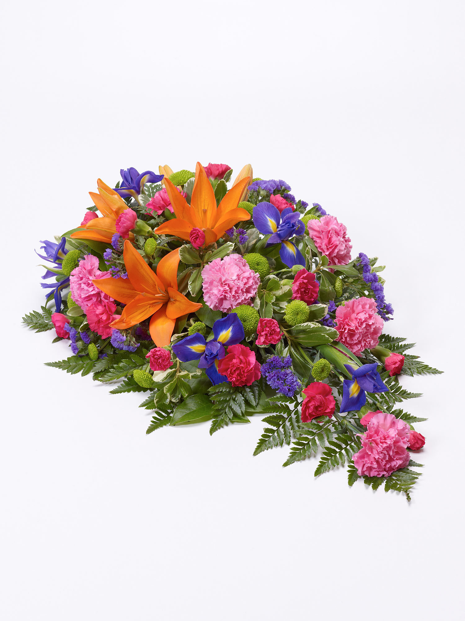 Vibrant Lily & Iris Funeral Teardrop Spray